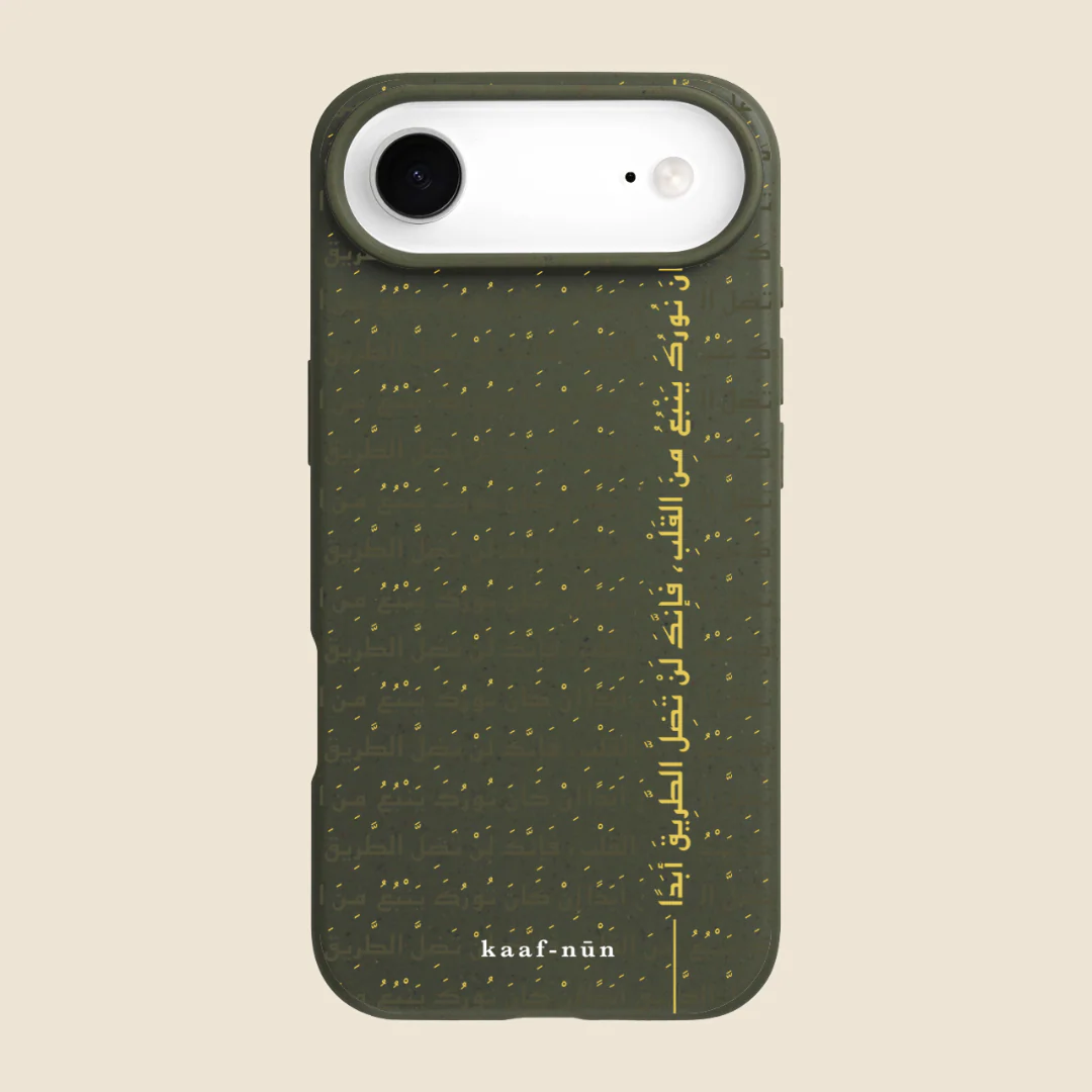 Infused with spiritual elegance, this green phone case features a beautifully scripted line of Rumi’s poetry: "إن كان نورك ينبع من القلب، فإنك لن تضل الطريق أبدًا" ("If your light comes from the heart, you will never lose your way"). Set against a deep green backdrop symbolizing growth and serenity, the golden Arabic calligraphy reflects the centuries old wisdom.